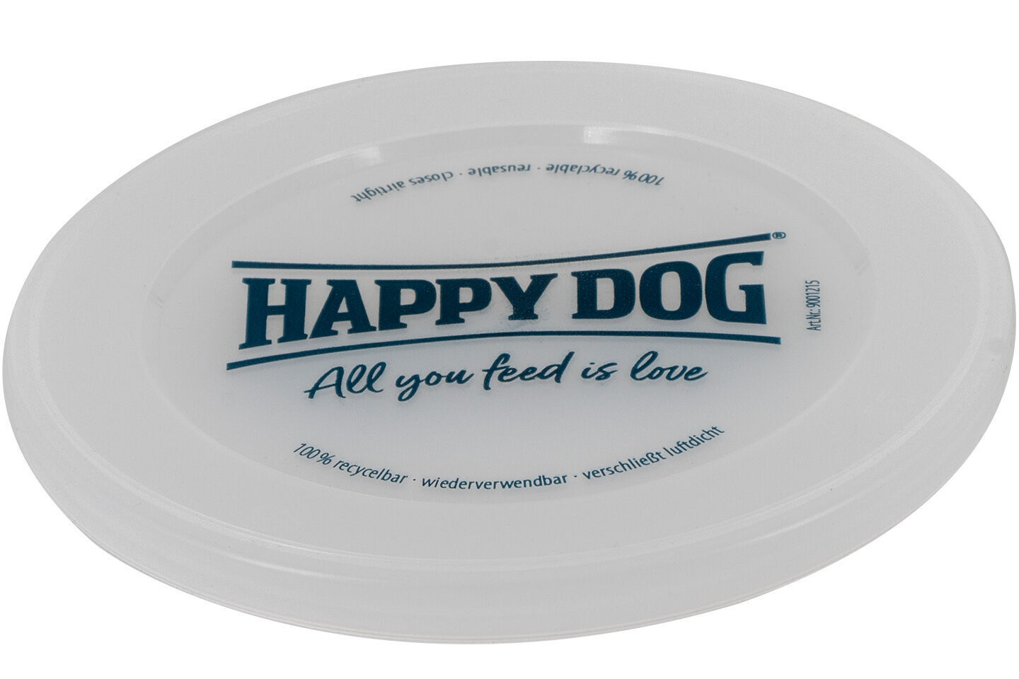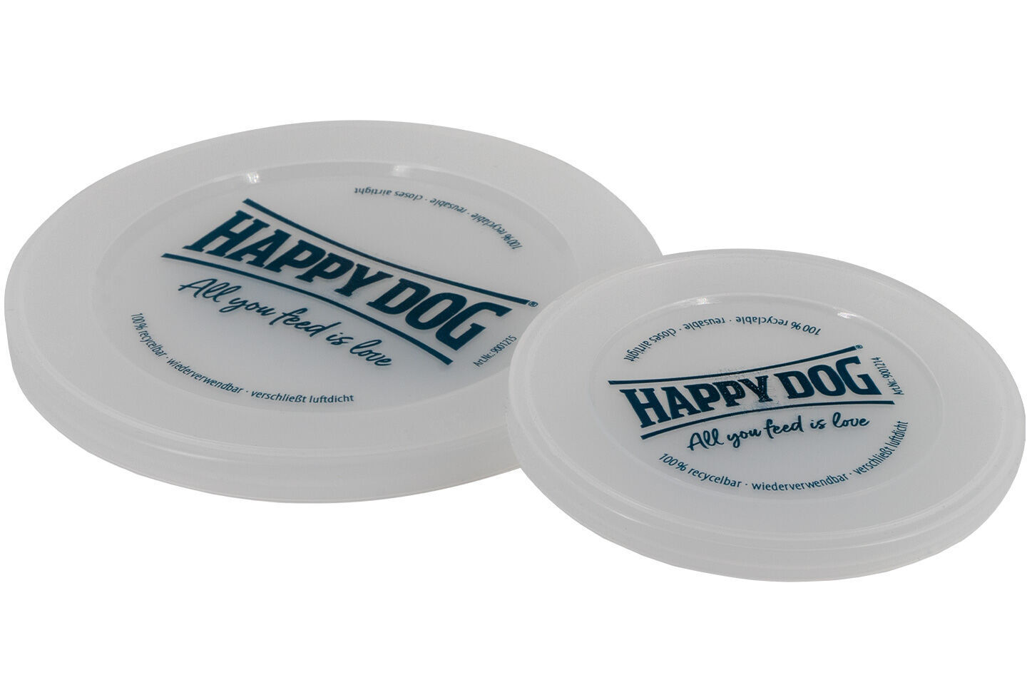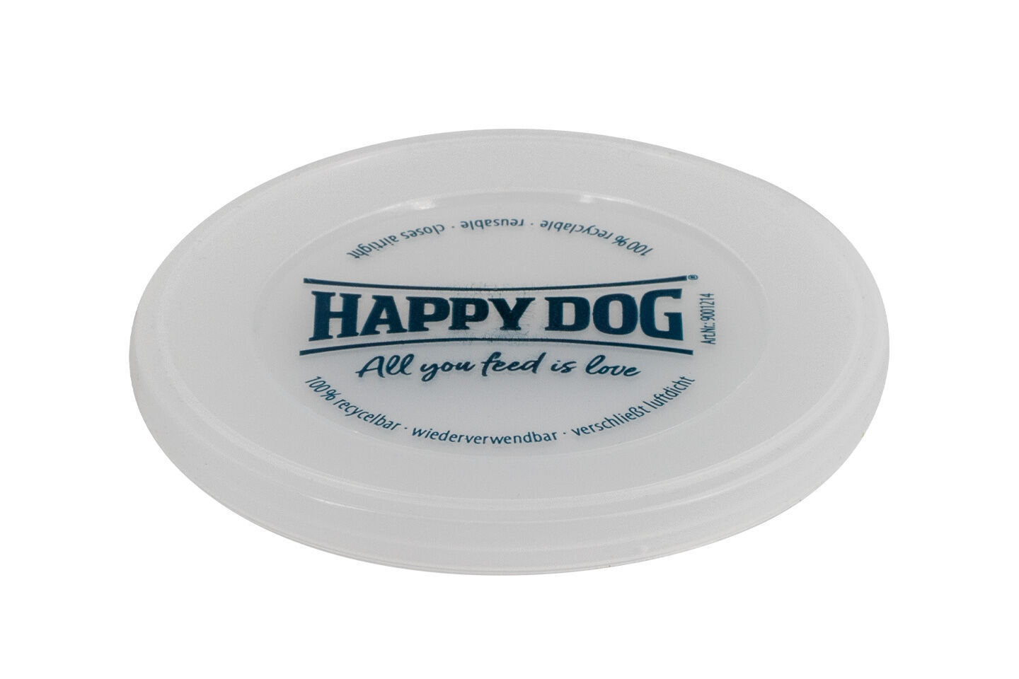 Der wiederverwendbare, spülmaschinengeeignete und 100 % recycelbare Happy Dog Dosendeckel verschließt luftdicht und hält so das Nassfutter länger frisch.